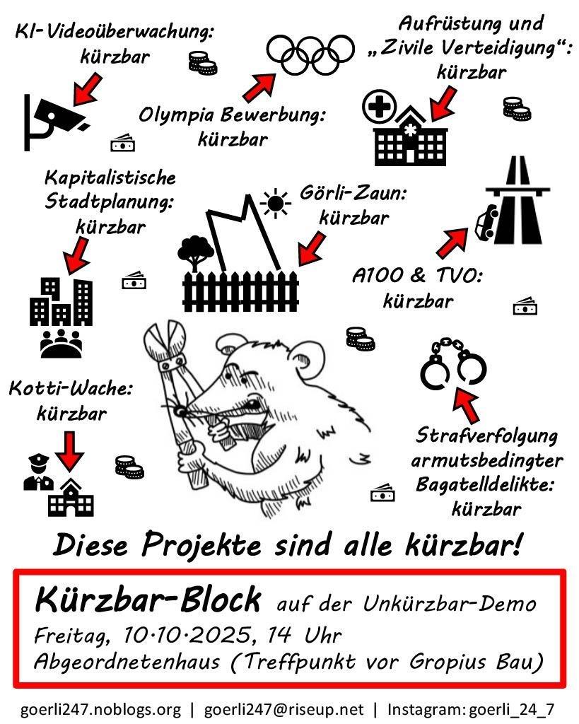 Dafür das Aus für soziale Projekte im und um den Görli und zusätzlich massive Kürzungen im sozialen Bereich.